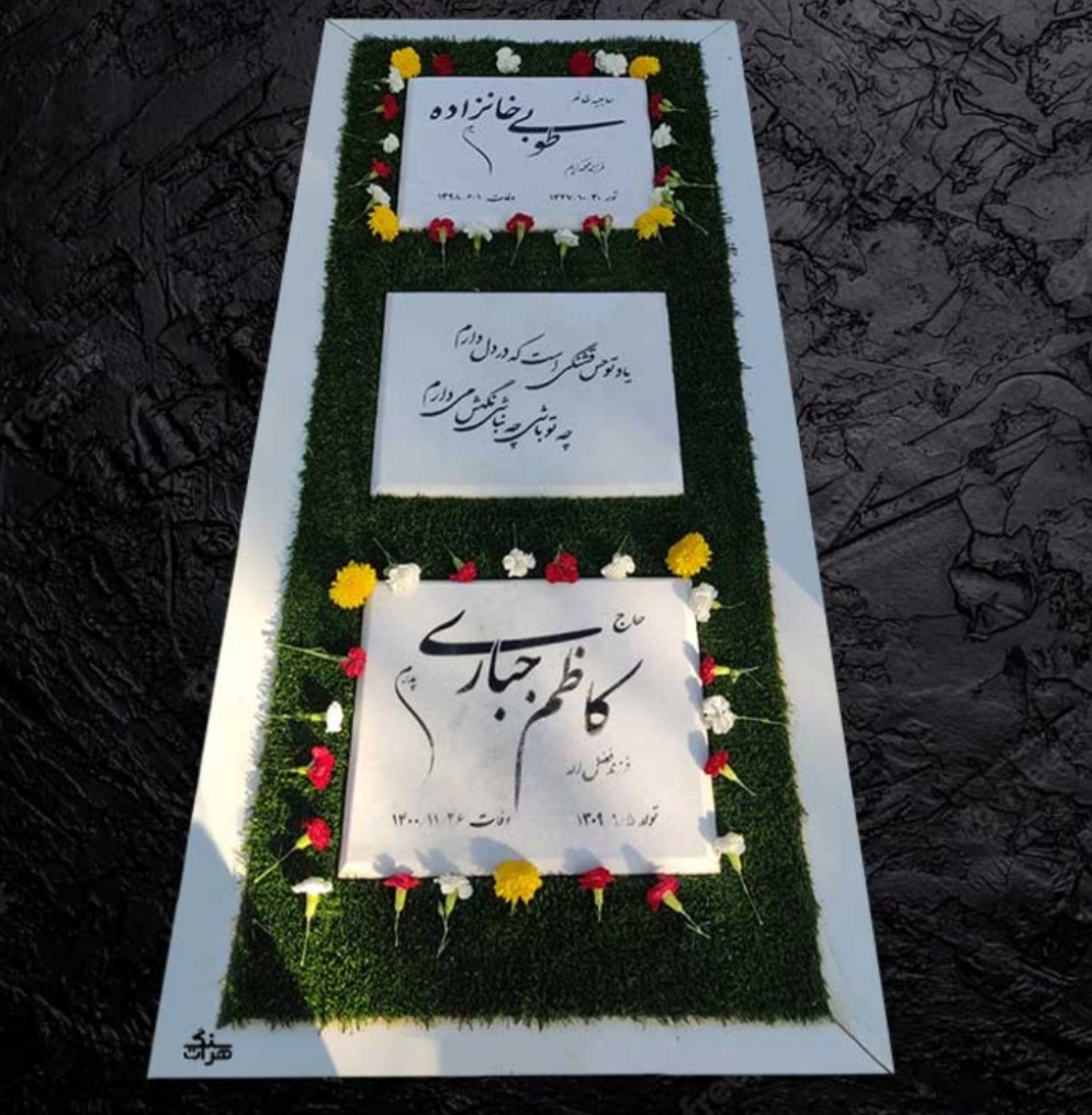 خطاطی و حکاکی متنهای سنگ قبر کاملا دستی و توسط هنرمند خوشنویسی شده است .